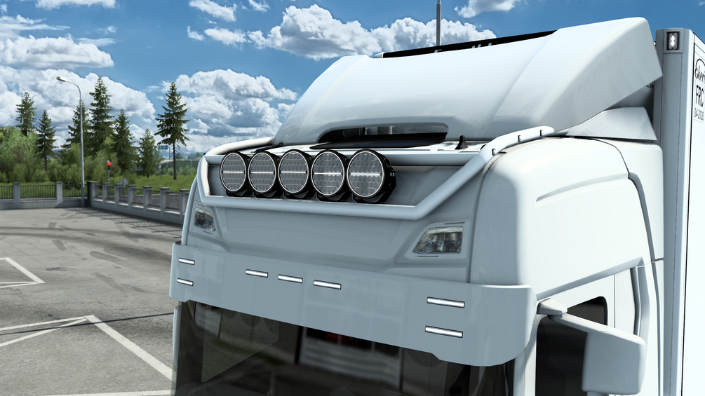 Hypro top bar for Next Gen Scania S&R. In this mod you'll get a painted version of this top bar with a couple slots for lights. As you can see in the picture the bar touches the spoiler a bit but I don't mind.